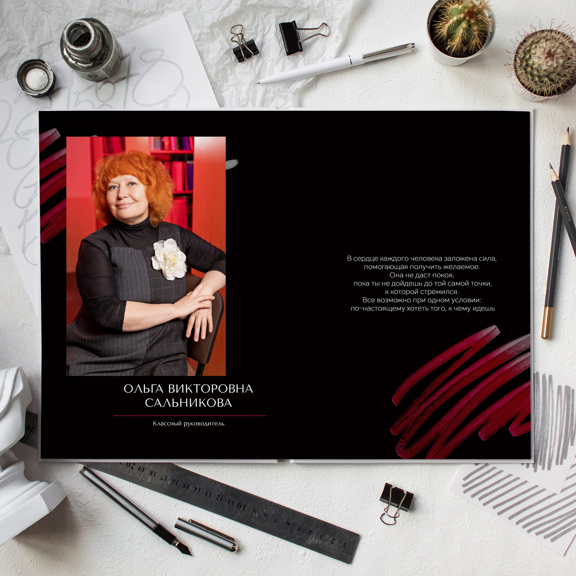 1 разворот — портрет учителя со словами ученикам, портреты учителей, пришедших на съемку;